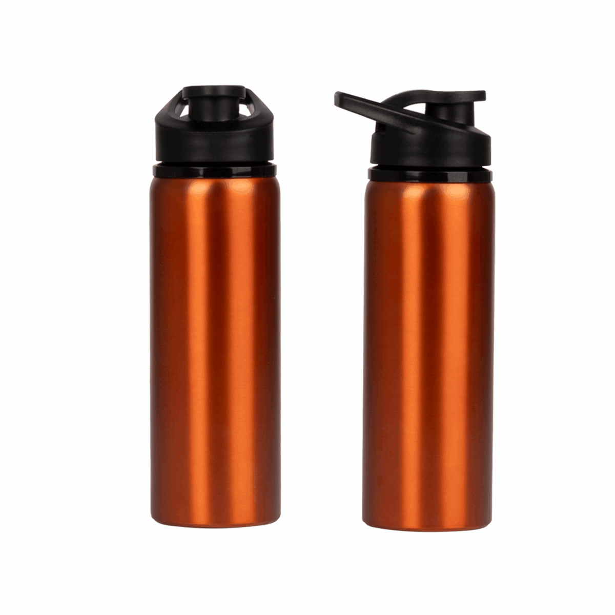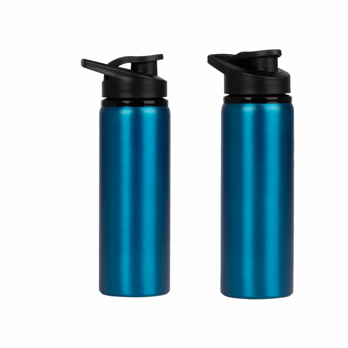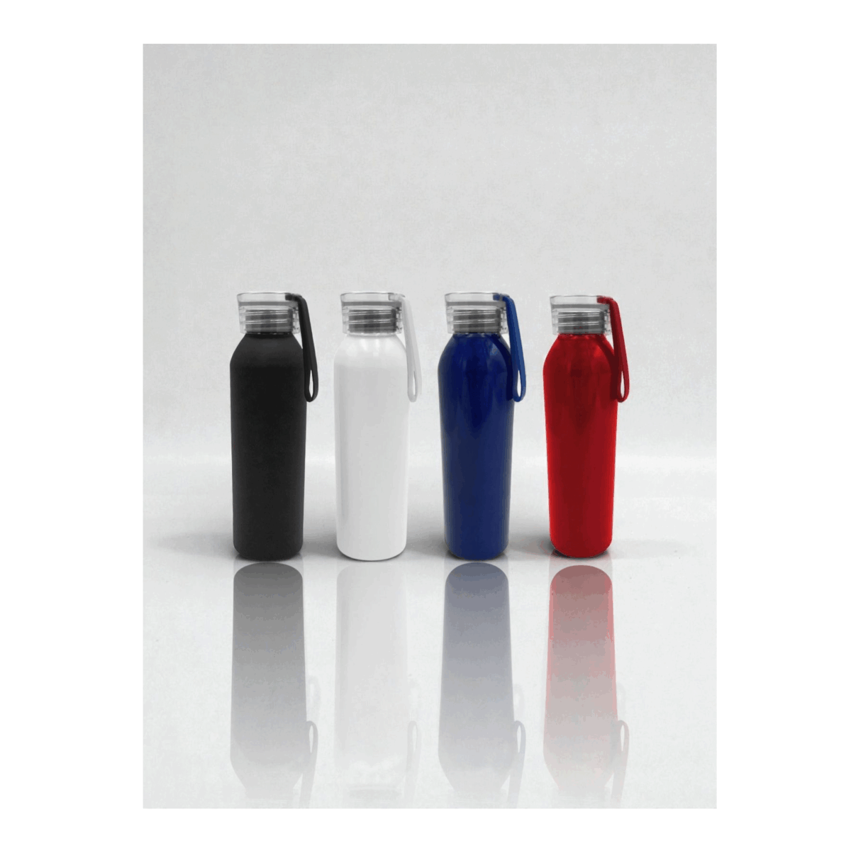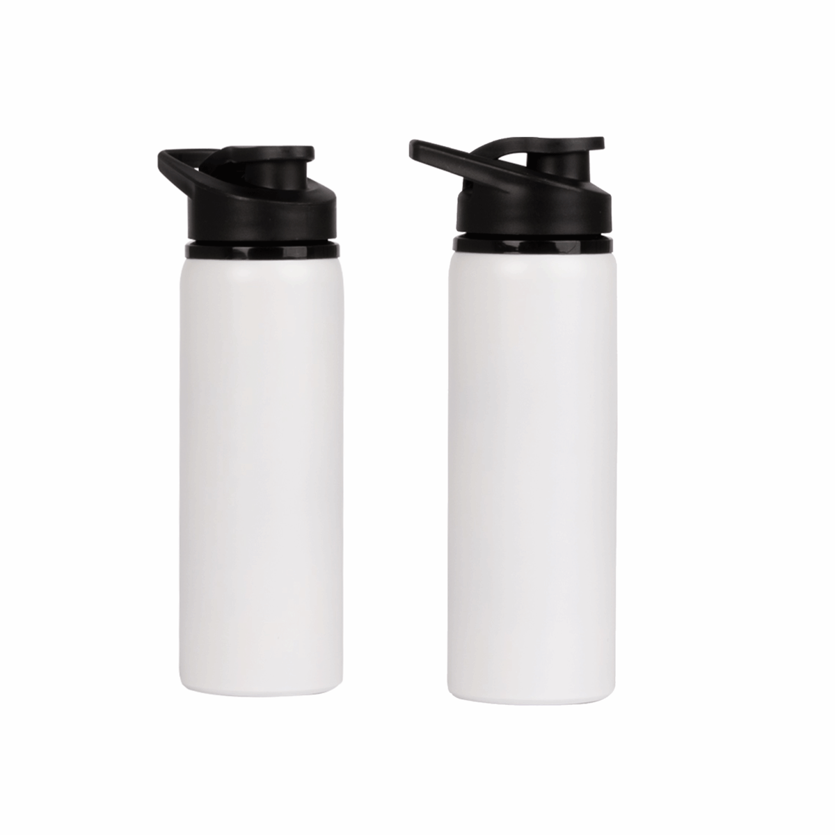 Sport Bottle botella metálica de Acero Inoxidable 304 SS modelo «APIA», con tapa rosca de plástico PP negro, asa de sujeción y anillo de silicona, anti-derrame. Producto BPA FREE.
