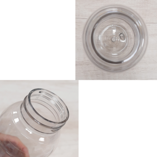Capacidad 550 ml. Peso de la botella: 62 gramos – Peso de la tapa: 26 gramos. Plástico. Cuerpo transparente. Tapa a rosca.